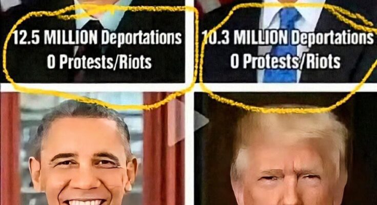 A single viral image is lighting up social media feeds and comment sections everywhere, claiming to show a stark comparison between four different U.S. administrations and their records on immigration enforcement. At first glance, the message is simple, bold, and designed to hit hard: millions of deprtations under past presidents with zero prtests or rots — versus far fewer deprtations paired with hundreds of street uprisings in a more recent era.