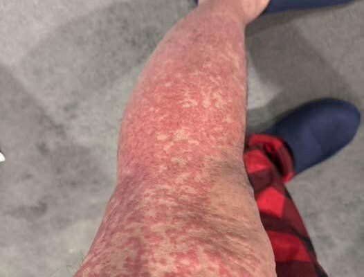 Cellulitis – if your rash is hot to touch, present only on one leg, uniform in colour with a clear border which increases in size, starting from an open wound or insect bite and you feel unwell, you may be suffering from cellulitis. This is an infection and will require medical attention.