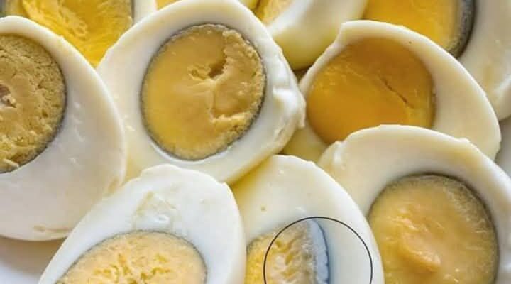 A green ring on a hard-cooked yolk is a result of overcooking and is caused by sulfur and iron compounds in the egg reacting on the yolk’s surface. The green color can also be caused by a high amount of iron in the cooking water. Scrambled eggs cooked at too high a temperature or held on a steam table for too long, can also develop a greenish cast. The green color is safe to consume.