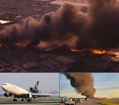 Chaos erupted near Louisville Muhammad Ali International Airport on Tuesday evening when a UPS cargo plane went down in flames shortly after takeoff. Thick black smoke billowed across the skyline as explosions echoed through nearby neighborhoods. Emergency crews rushed to contain the inferno in what officials are calling one of the worst aviation accidents in recent memory.