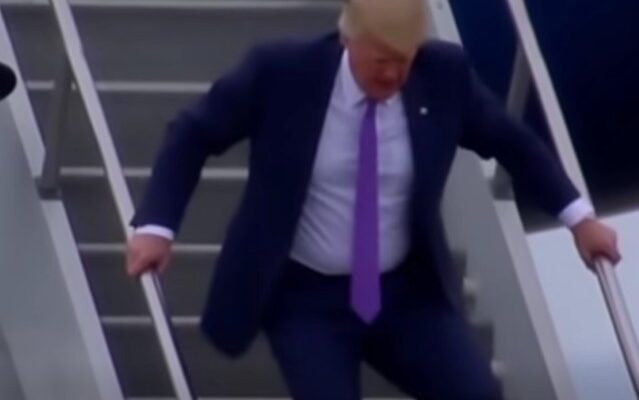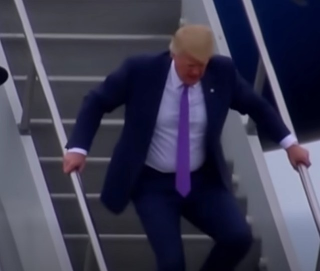 The incident occurred on December 15, 2025, as Trump returned from a fundraising gala in Florida. According to flight manifests obtained by this reporter, Trump’s Boeing 757—affectionately dubbed “Trump Force One”—touched down amid light rain, which some aides initially blamed for the slip. Video footage shows Trump waving confidently to a small crowd of supporters before descending the stairs. Halfway down, his right foot appeared to catch awkwardly, causing him to lurch forward. A burly Secret Service agent grabbed his arm, preventing a full fall, but Trump’s face registered a mix of surprise and frustration. He quickly composed himself, flashing his signature thumbs-up, but the damage was done. Social media exploded with speculation, hashtags like #TrumpSlip and #WhatsWrongWithTrump trending within hours.