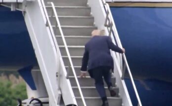 In a scene straight out of a political sitcom, former President Donald Trump experienced a spectacularly dramaticstumble while boarding Air Force One this morning — and witnesses say the moment was …